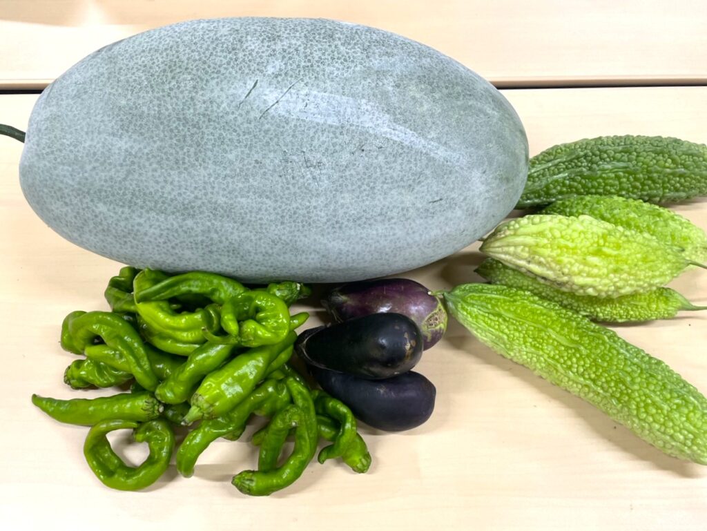 今週も農家さんから冬瓜、ゴーヤ、胡瓜など新鮮なお野菜をいただき、本当にありがたい限りです。