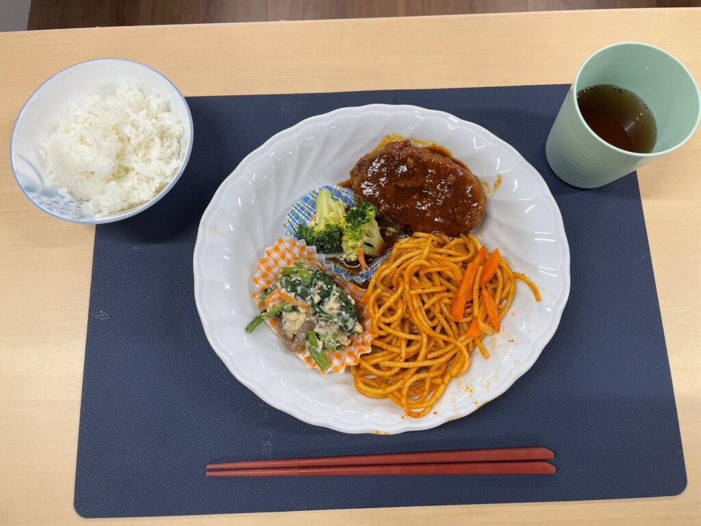 この日の食事は「甲子園のぽこた」さんに作っていただきました。メニューはハンバーグ、スパゲティ、ブロッコリーのサラダ、ほうれん草の白和えでした。手作りハンバーグが好評でお替りが直ぐなくなりました。