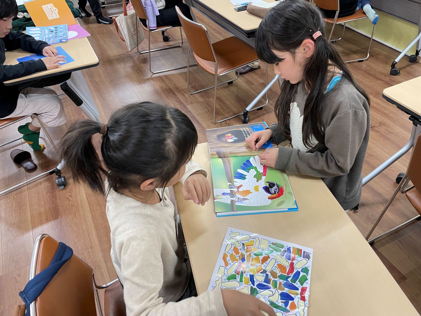 第104回目の「おかえりリテックス」を開催しました。今回はこども17名、スタッフ8名の25名が参加してくれました。最近低学年の集中力が続かないことが多く感じたので、知育シールパズルを買ってきてやらせてみました。番号と同じシールを見つけ細かい部分に貼っていきます。同じ番号を選ぶことで数字を認識することや細かいところにきっちりと貼ることで指先を使い、空間認識力も高められ、完成すると達成感があります。色々な事に集中して楽しんでやることで脳への刺激があるようで一生懸命やっていました。